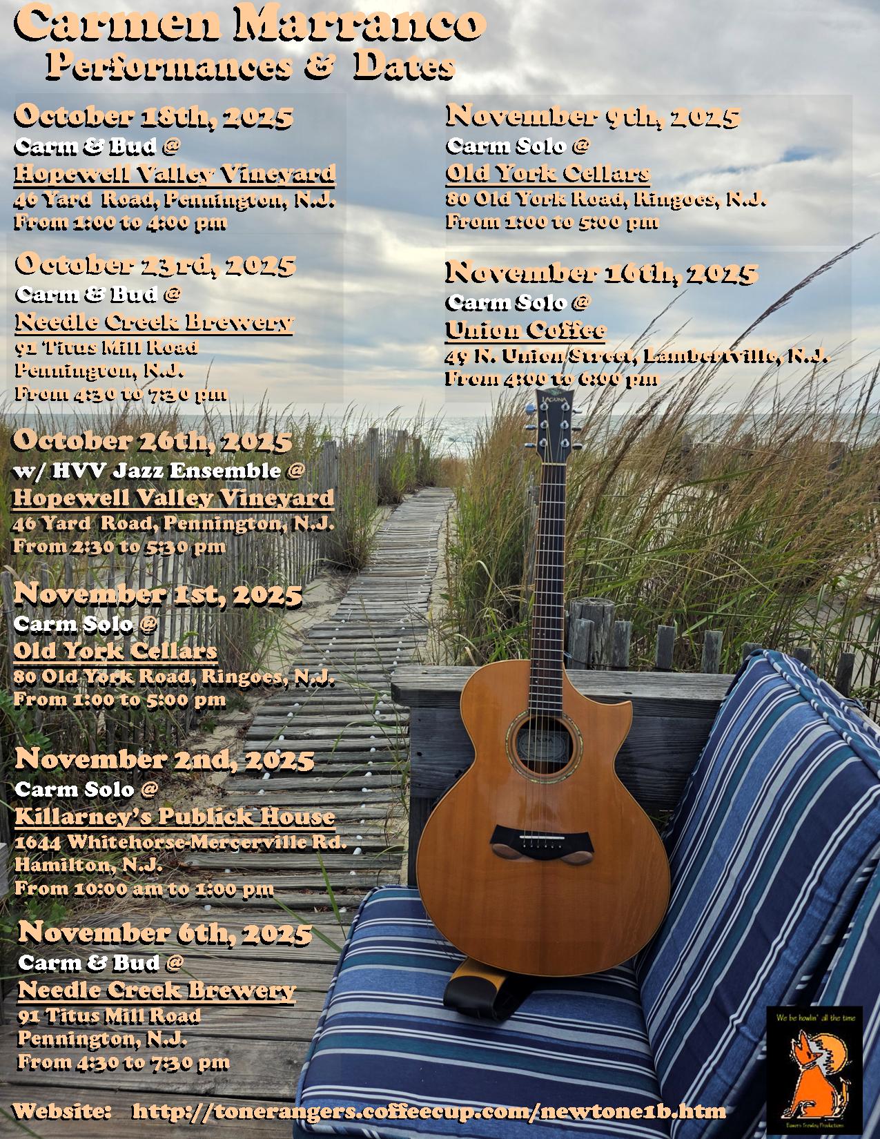 In addition to the normal electric mentality, John and Carm | ![]() Live at Hopewell Valley Winery (photo by our Friend Ro) |